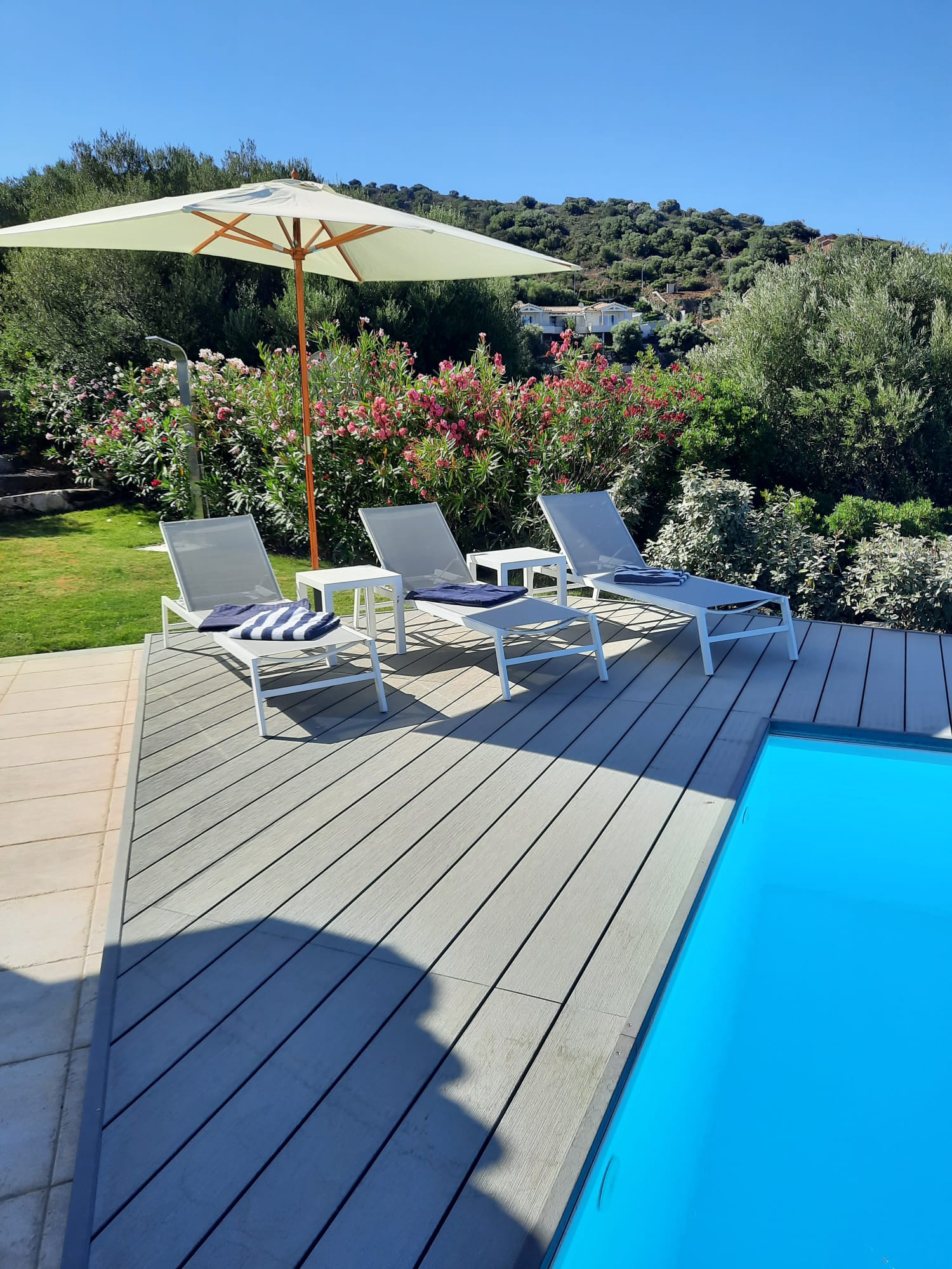 A shaded terrace area is available on the lower floor for further relaxation and is accessible from the 3 main bedrooms.